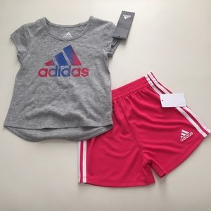 Adidas Baby Girl Pink Shorts Top Outfit