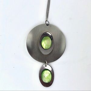 Green Shell & Silver Metal Artsy Necklace