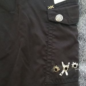 17.5" measured across waistband laying flat.. most likely 34 waist but tag is faded. Button pocket at side right leg.