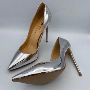 FSJ Silver Metallic Heels Pointy Toe Stiletto Pump