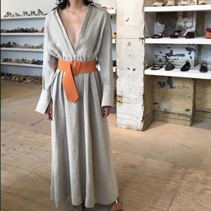 $503 Paris Georgia Beige Linen Larry Midi Dress Size Small