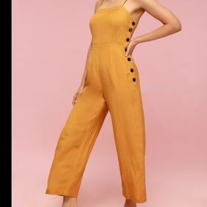 Adorable crop jumpsuit with button side. Ruched back. Stock photo for style and fit. Selling khaki. Size S. EUC