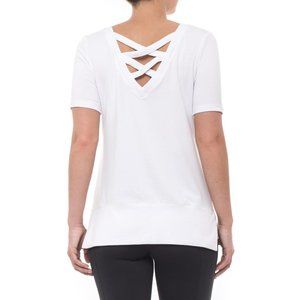 90 degree by reflex cotton workout tee shirt with criss cross back detail