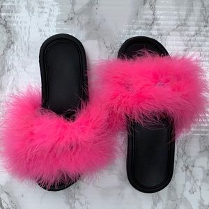 New Kids Girls Fuzzy Pink Slide Sandals size 5 / 6