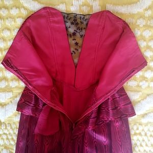 totally sexy and form fitting. the corset top on the dress has boning along the lines of the chest. the lace is a deep, sheer v. the fabric has a silky sheen.