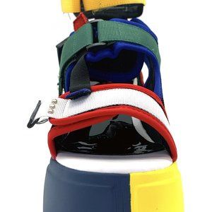 Multiple velcro and metal buckle closure