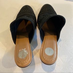 This mule is not only made from incredible genuine leather, but it is also incredibly soft and comfortable. This slip-on mule will easily become a new favorite with the stacked wooden heel and the intricate woven details on the top.