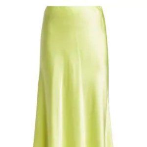 NWT CINQ À SEPT Marta 100% Silk-Satin Skirt In Lemongrass Size Large