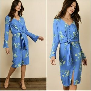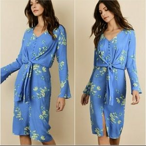 Beautiful blue floral button down dress with waist tie!