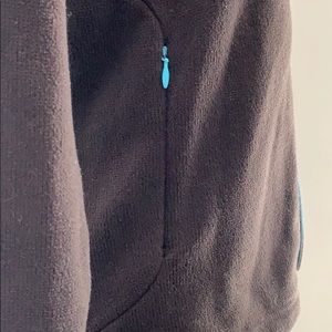 Worn, in good shape. Blue accents on zipper and pocket zippers.