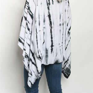 @dehoffman1 medium length from shoulder hem down to bottom hem is about 28” and the longest point at sides goes down to about 36”