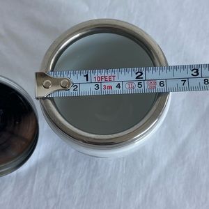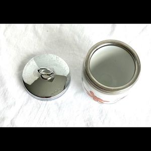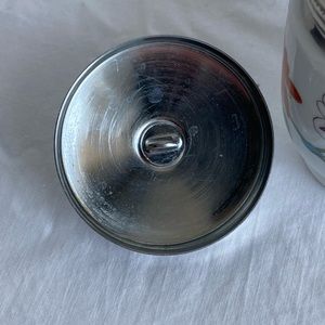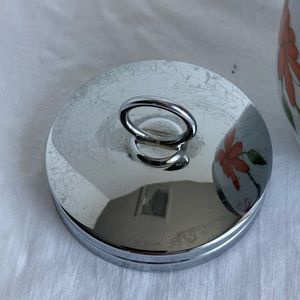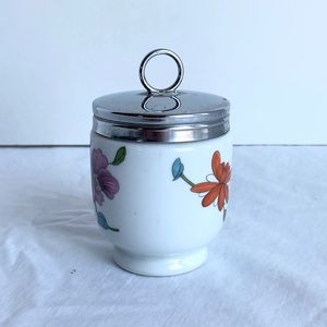 Vintage Royal Worcester Astley Porcelain Egg Coddler. White with bright purple and orange flowers and deep green leaves. Chrome top has water type marks but nothing is etched or scratched.