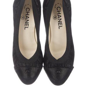 Chanel Black Metallic Suede Ruffle Toe Pumps
