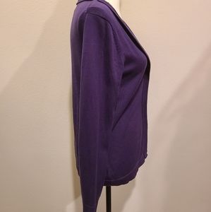 Purple with velvet purple lining and bead work. No buttons, hinges together. Like new.