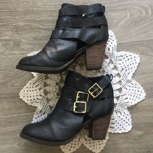 buckle chunky black vegan leather ankle booties