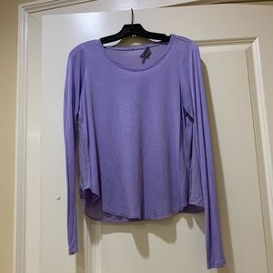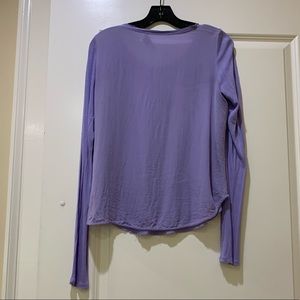 This lilac long-sleeved dressed-up tee boasts a cotton blend front with a silk back. Size M. Vince by Vince Camuto. The inside tag has fallen half off as shown, but that would not affect the wearing of this beautiful-colored top!
