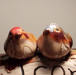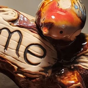 Sweet Woodsy Ceramic Welcome Sign Birds Drip Glaze Mantle Decor