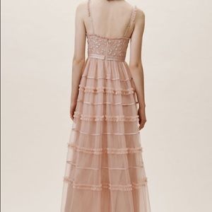 Anthropologie x BHLDN Needle & Thread Clayborne Dress MSRP $349 An embroidered and sequined bodice tops a tiered skirt, crafted from Swiss dot tulle. Ruffled accents trim the straps and neckline and add texture to the A-line skirt. * Back zip * Adjustable straps * Polyester; polyester lining * Professionally clean * Size 0 and size 6 available * Fits true to size; take your normal size. * Check size chart.