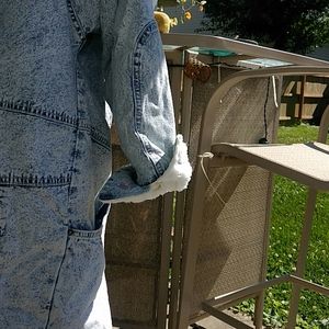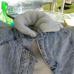 Winter ❄️ is coming, and this coat will keep you warm as it is fully sharpa lined inside and long it stops right above the knees. You might be seeing double, but I have two of these beautiful coats. This one has less ware no yellowing, great cozy acid wash coat, and hope there is still people out there that like this style.
