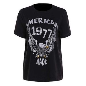 Graphic t-shirts are all the rage! Bohemian rock silver printed Eagle ‘American 1977 Made’ tee.
