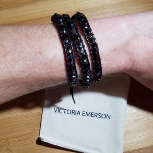 Black crystals sparkle and shine, reflecting a rainbow of colors on this gorgeous black leather wrap bracelet from Victoria Emerson! Photos don't do justice to this beautiful bracelet!