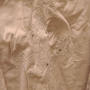 Skirt has silver and bronze floral designs with bronze embellishments as shown in the photos.