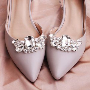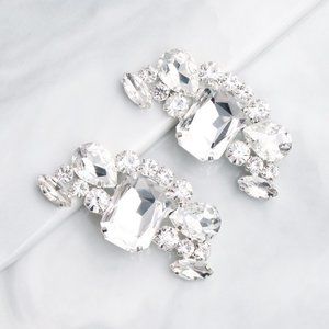 Gorgeous, brand new shoe clips. Silver tone with crystals. The measurements are 2-3/4" x 1-1/4" and the weight is 34 grams. The clips are new, never worn before.