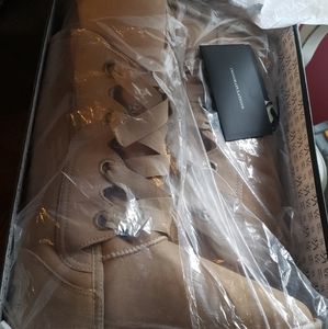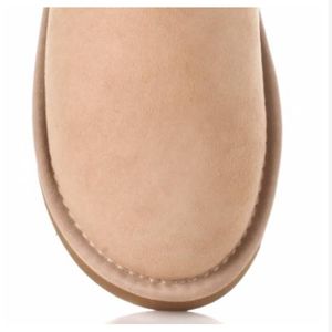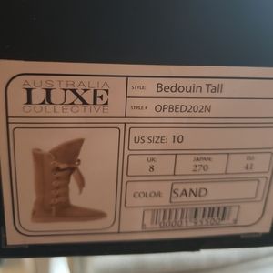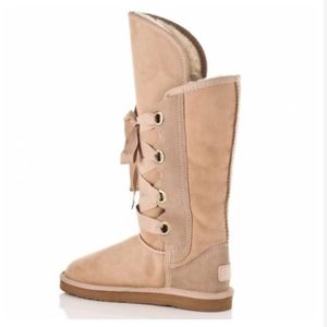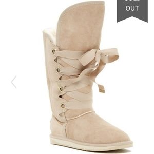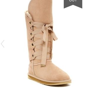 Absolutely gorgeous boots. Superior craftsmanship and quality make these a must have for many celebrities. Round toe - Ribbon lace-up vamp - Pull-on - Genuine shearling lining - Brand logo plate - Grip sole - Approx. 15" shaft height, 15" opening circumference - ImportedMaterialsGenuine sheepskin upper, genuine shearling.
