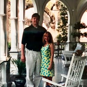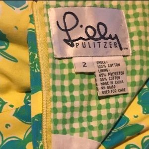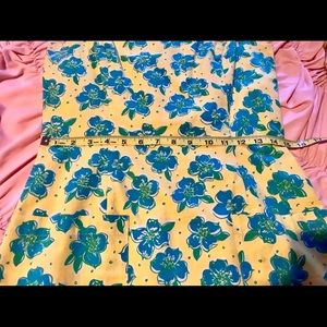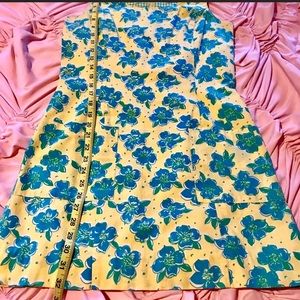 Lilly Pulitzer vintage yellow shift with blue dogwood flower pattern (the state flower of North Carolina), 2 front pockets, back zip, green gingham lining, poly/cotton material, size 2. Please see photos for measurements. Has been professionally dry cleaned. Lovingly cared for in a smoke free home.