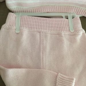 Pink and White Sweater Set with matching cap.