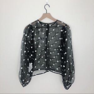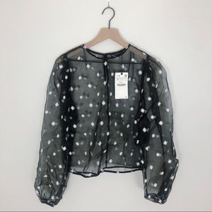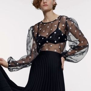 NWT Zara Black Polka Dot Embroidered Organza Sheer Blouse