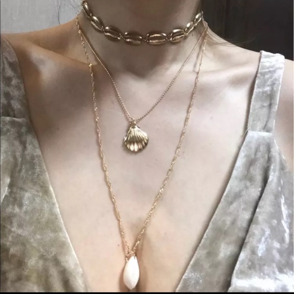 It’s light and dainty and adds the perfect touch. This one is in a gold color and includes 3 matching necklaces perfect for layering. They all have a sea shell design.