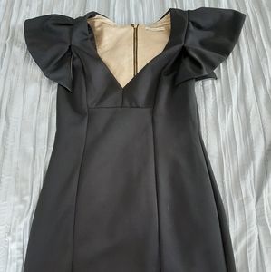 Beautifully designed mustard seed lbd with gold underlay and short sleeves. Cut out back with two zips, short skirt and v neck front. Perfect for your next girls night out