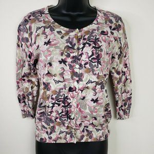 Banana Republic Cardigan Sweater Small Floral Gray