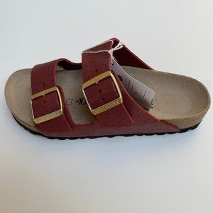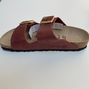 NWT Birkenstock Arizona Leather Sandals in Washed Metallic Port- Narrow