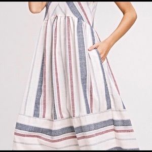 SOLD πListicle Midi Linen Striped Dress EUC M