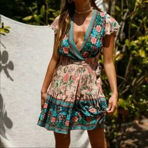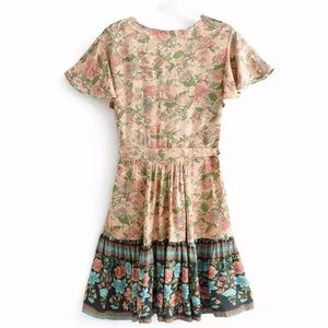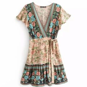 Boho Floral Gypsy Print 70’s Wrap Dress V Neck