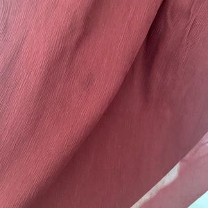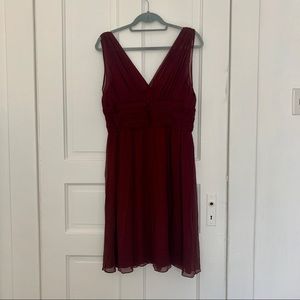 Worn once. Small discoloration on the skirt (pictured), which is barely noticeable with the flowy material. Note: this piece has been altered and is not a true 14. Measurements on flat garment: Bust 17.5”, Waist 15”, Hip 23”, length 30”.