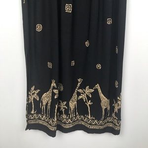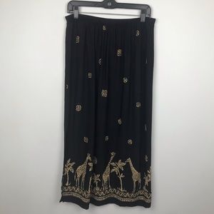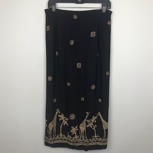 Alfred Dunner Black Safari Skirt Pull On Beige Giraffe Design W Slit Sz 14P.
