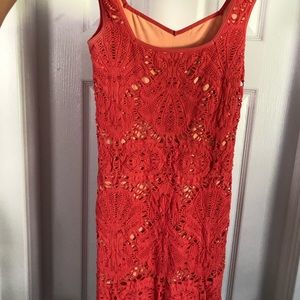 Free People Bodycon dress in Coral stretch lace pattern and light coral stretch lining