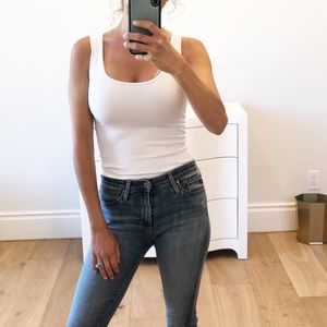 Closet staple! This ribbed seamless tank is a ultra soft blend of nylon & spandex. It’s super stretchy & can be worn for workouts/yoga, lounging at home or w shorts/jeans.