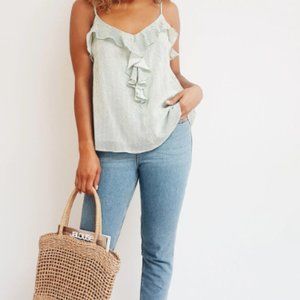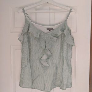 Its loose fit, paired with its lightweight material, will be nice to wear dressed up or dressed down. The thin straps are adjustable. Excellent condition No stains, rips or thread pulls Just needs ironing Approximate flat measurements in inches: Bust: 18" Waist: 19" Hips: 21"