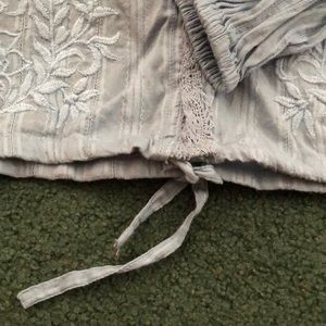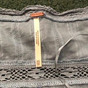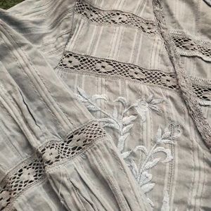 Adorable Free People crop lace inserts and embroidery . Snaps down front as well as tie.