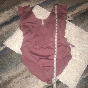 Be top of the class in this lightweight wrap bodysuit featuring a plunging neckline and flutter sleeves perfect for dancing and moving.