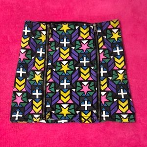 Features purple, pink, blue, black, white, green & yellow shapes | Two REAL silver zippers and a comfortable band at the waist ๐ | Brand: Divided by H&M | Size: 4