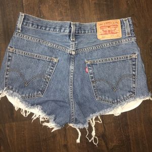 Relaxed fit Levi denim short. High waisted cutoff. In excellent condition. Medium wash. An all time cheeky favorite. These say 32 waist but I am a 27-28 and these fit great and relaxed.