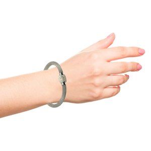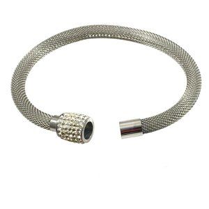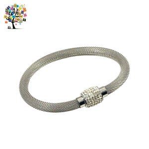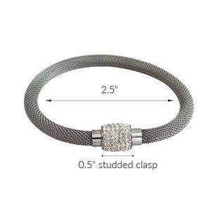 🛍️ Stainless steel mesh band bracelet with magnetic clasp studded with brilliant clear crystals.