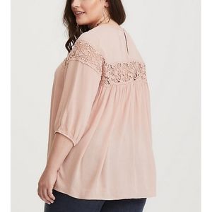 DONATING 1/20/25 Torrid Pink Gauze Lace Inset Blouse