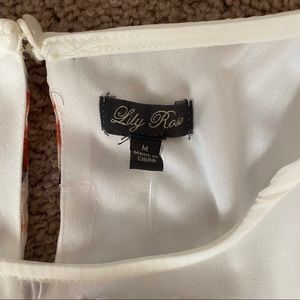 Lily Rose white floral dress, size medium. Brand new with tags, never worn. Smoke free home. Feel free to make an offer ☺️