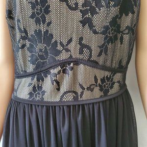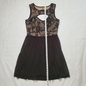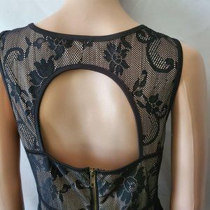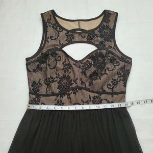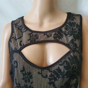 UP by Ultra Pink Black/Tan Lined Bodice Lace Cut-Out Cocktail Dress Size Medium